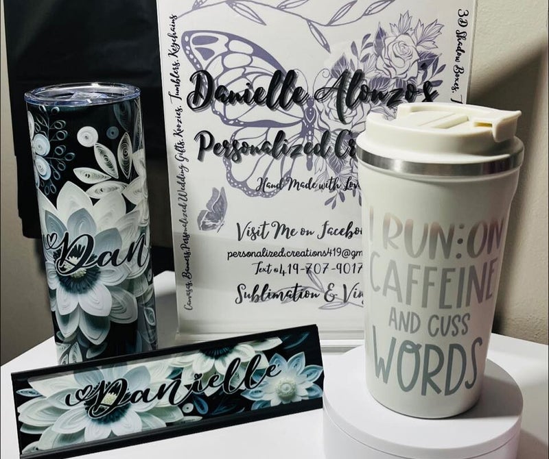 At Danielle Alonzo's Personalized Creations, we specialize in bringing your imagination to life. From custom T-shirts to unique tumblers and so much more. Every product is crafted with care and precision to reflect your personal style. ALL items can be personalized and customized to your style!