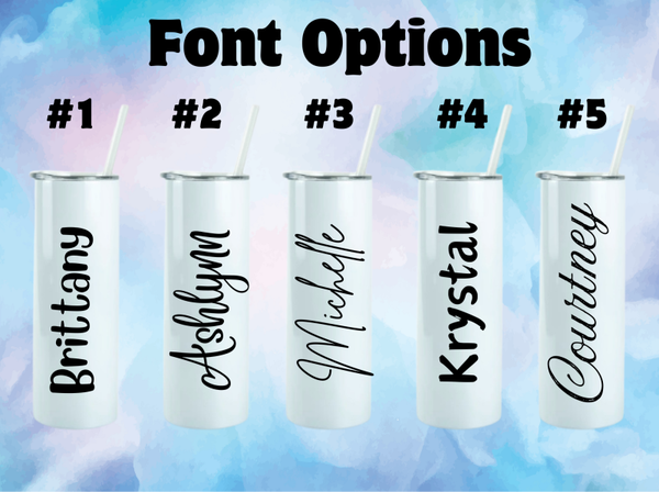 - **IMPORTANT** PLEASE INSURE TO CLICK ON OTHER OPTIONS AND FILL IN PERSONIALZED NAME IF YOU WANT A NAME ADDED TO IMAGE. ALSO BE SURE TO CHOOSE WHAT STYLE OF CUP YOU WANT BY LIST THE LETTER OF CUP (A,B or I)**A PROOF OF YOUR CUSTOM DESIGN REQUEST WILL BE EMAILED TO YOU TO CONFIRM EVERYTHING IS CORRECT BEFORE BEING MADE.